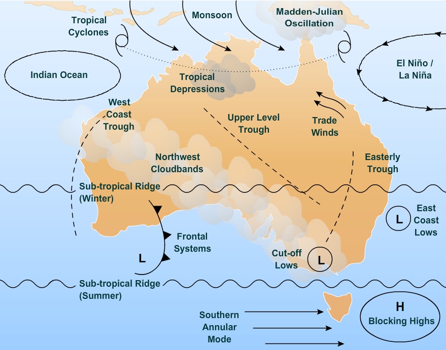 This year our Tropical Cyclone Season Outlook model predicts a 66 chance of an above-average number of tropical cyclones in the Australian region. However the cold water in the eastern Pacific causes less rain clouds to form there. La Niña is therefore typically associated with wetter than average conditions for northern and eastern Australia particularly in winter spring and early summer. La Niña which is Spanish for The Girl is a complex weather pattern that pushes warm water towards the western side of the Pacific including Australia and.